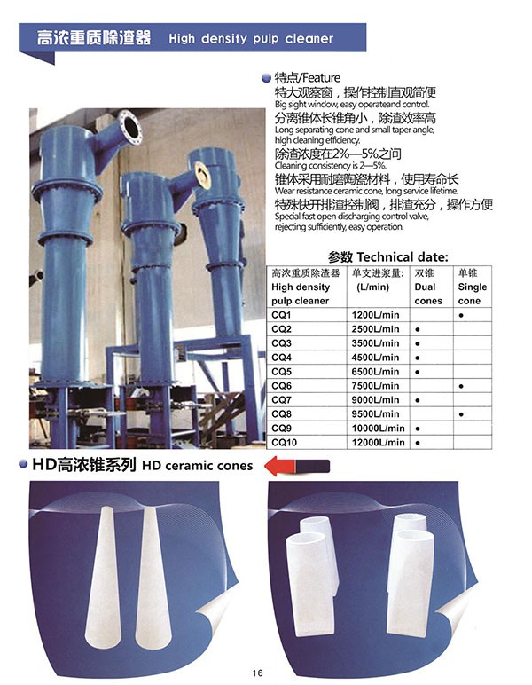 2.轻质除渣器,是从下面注入纸浆,因为离心力和重力,比重大的二次纤维往外运动,从下端集中,比重轻的杂质接近圆心运动,从容器的上端排出。